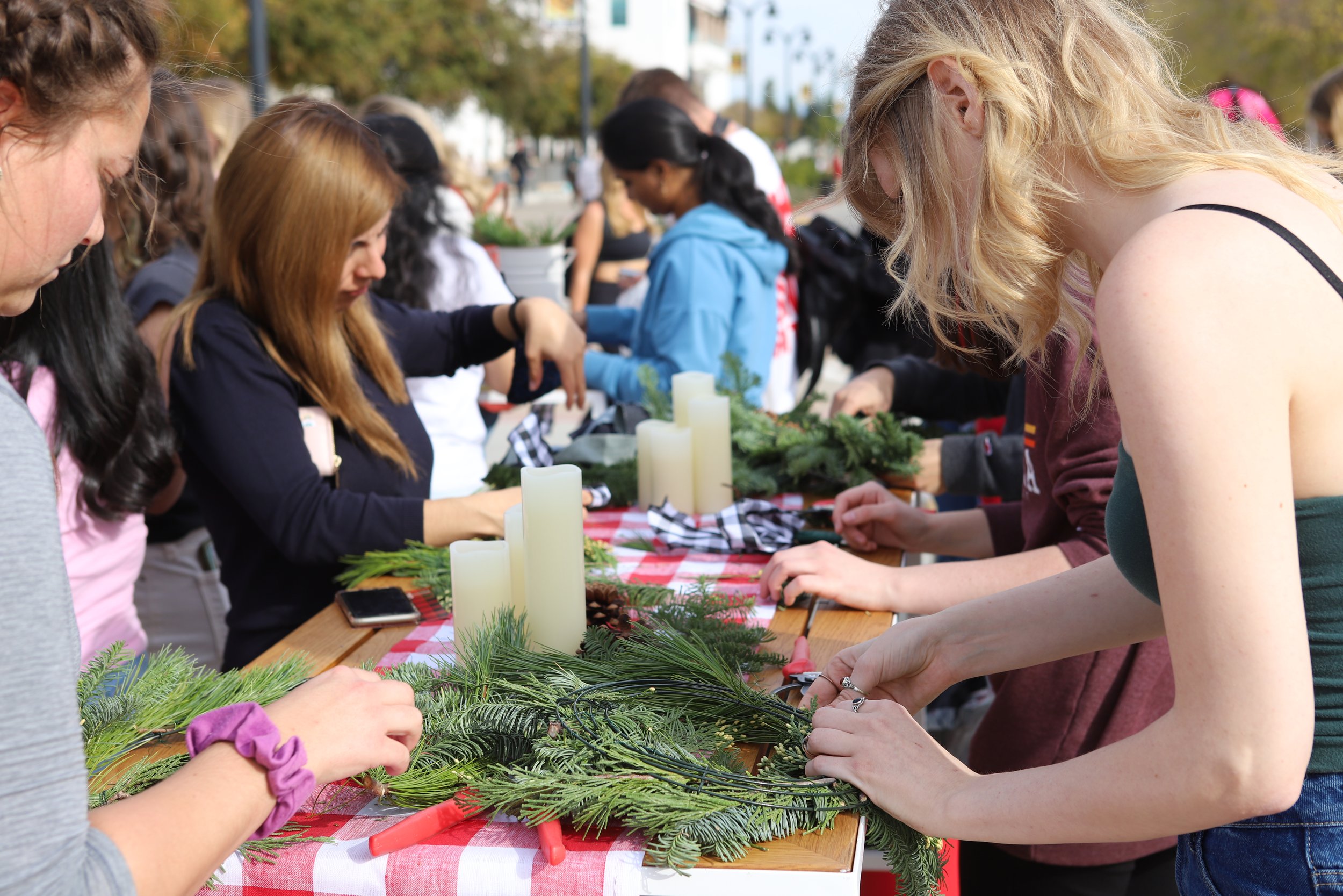 Who doesn’t love a fresh and festive activity! Our fresh wreath making workshops or makers bars are popular, engaging, and fun for everyone! This activation uses fresh seeded eucalyptus, fresh cedar and pine cones to create something fragrant and festive to take home. Option to go full size Or make it a mini for those who need it to fit in their carry-on.